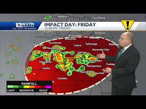Pour vendredi et samedi, un nouveau système météorologique se profile à l'horizon. Le centre de prédiction météorologique, une branche de la NOAA, met en garde contre un risque potentiel d'inondations soudaines pour le centre et le nord de l'Alabama. Les modèles indiquent des tempêtes potentiellement actives vendredi après-midi et soir, principalement au sud de l'autoroute Interstate 20.